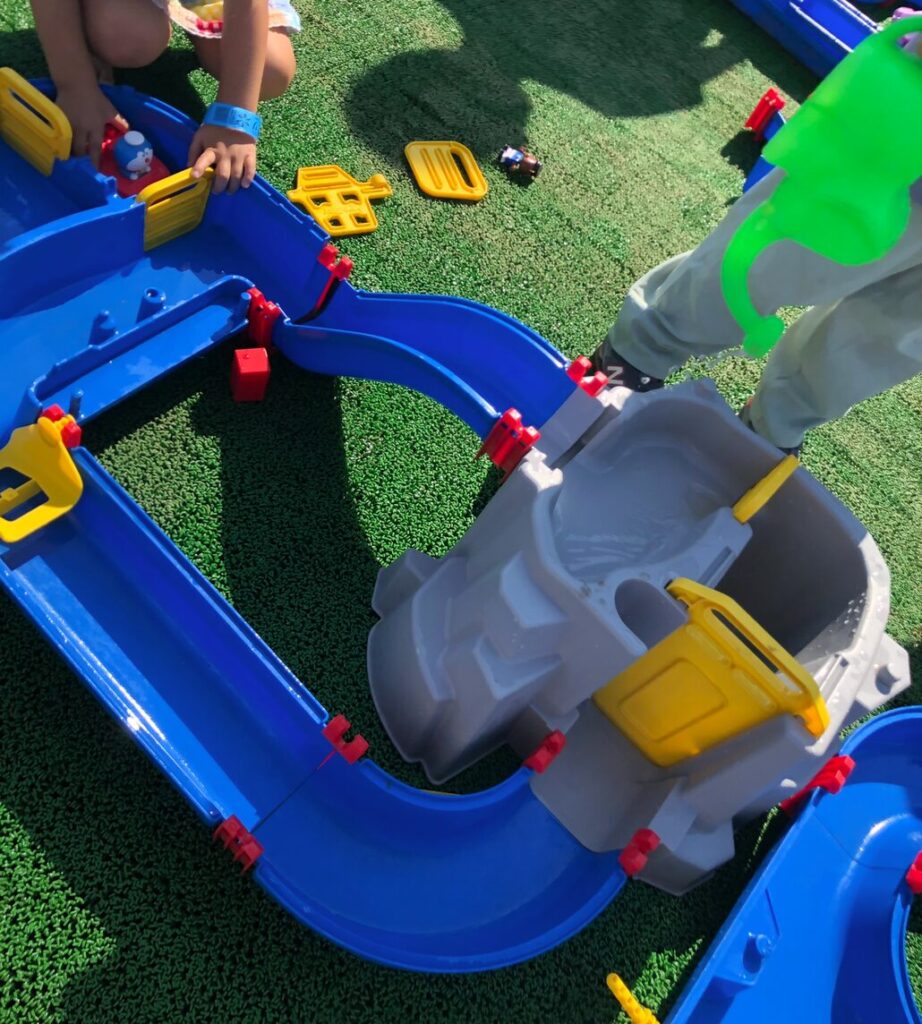 地面から水が吹き出すエリアは小さい子たちが楽しそうに遊んでいましたが、びしょ濡れになるので着替えは必須です